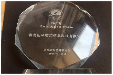 青島山科智匯公司榮獲“青島市在岸服務外包 TOP10”稱號