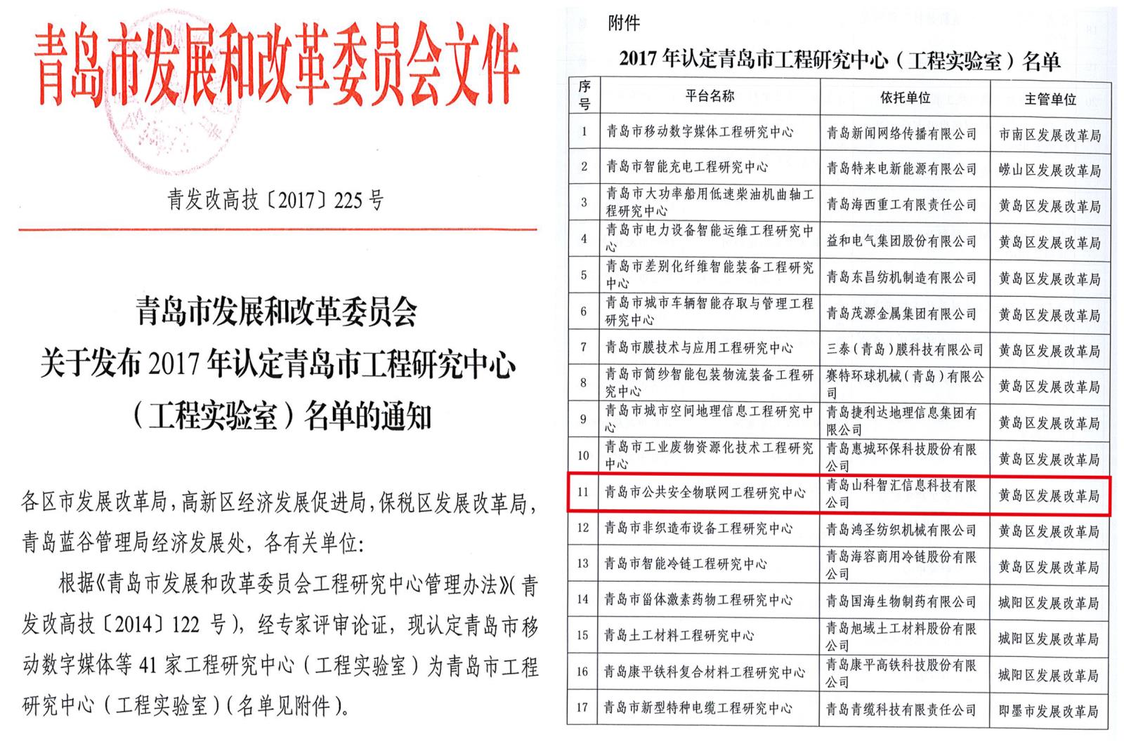 青島山科智匯信息科技有限公司獲評“青島市工程研究中心”